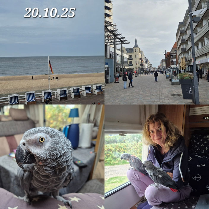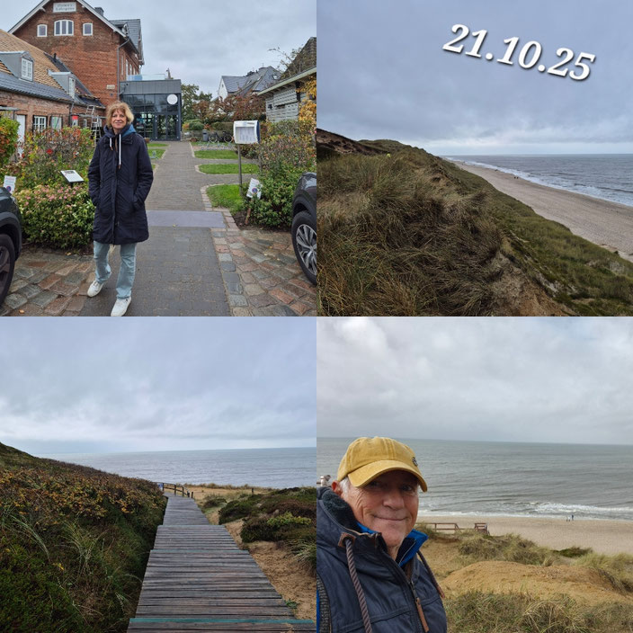 20.10.: Wie erwartet beginnt der Tag mit leichtem Regen. Der hört zum Glück nach dem Frühstück erstmal auf. So fahren wir mit dem Smarti nach Westerland und bummeln ein wenig durch die Friedrichstraße. Als wir die Promenade am Meer erreichen, kommt sogar noch kurz die Sonne heraus.