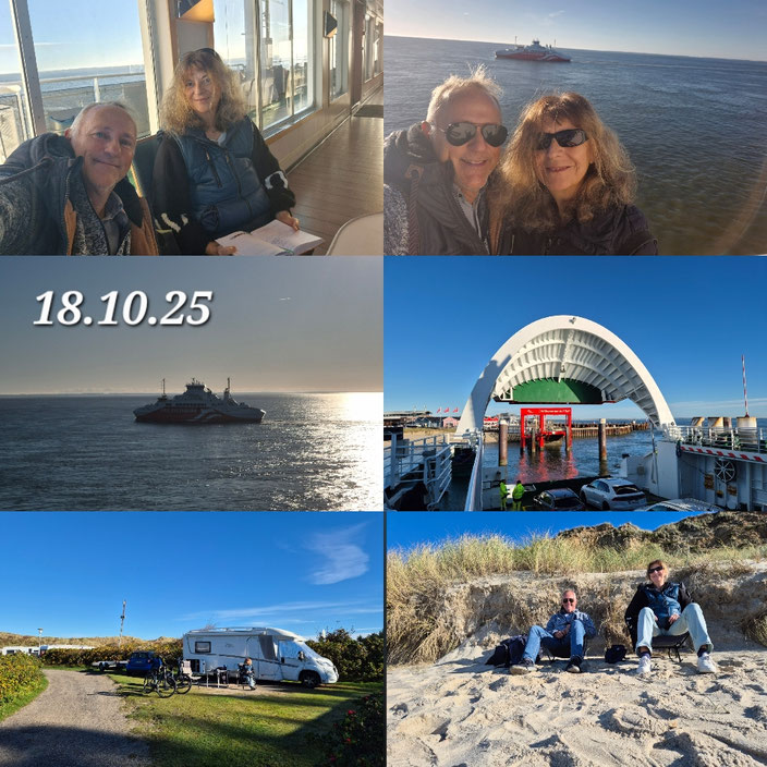 Nach einer sonnigen, ruhigen Überfahrt legen wir um zehn nach zehn in List an und erreichen den Campingplatz in Kampen um halb elf. Zum Glück ist unser Platz 95 schon frei und wir können direkt drauf.