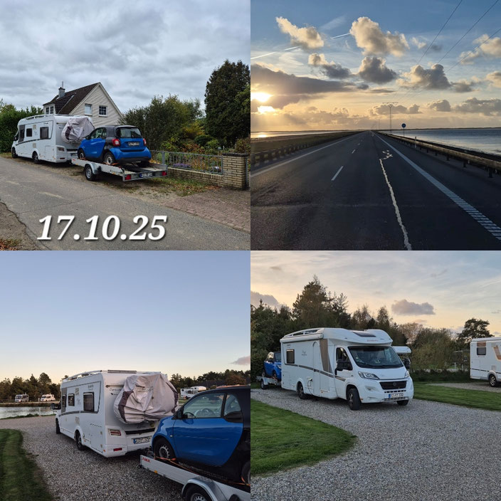 Während es unterwegs immer mal wieder etwas regnet, empfängt uns Dänemark mit Sonnenschein und wir erreichen den schönen Stellplatz um kurz vor 18Uhr. Da wir ja schon gebucht hatten, können wir direkt auf unseren Platz (Nr. 10 direkt am See) fahren und checken anschließend kurz am Automaten ein.